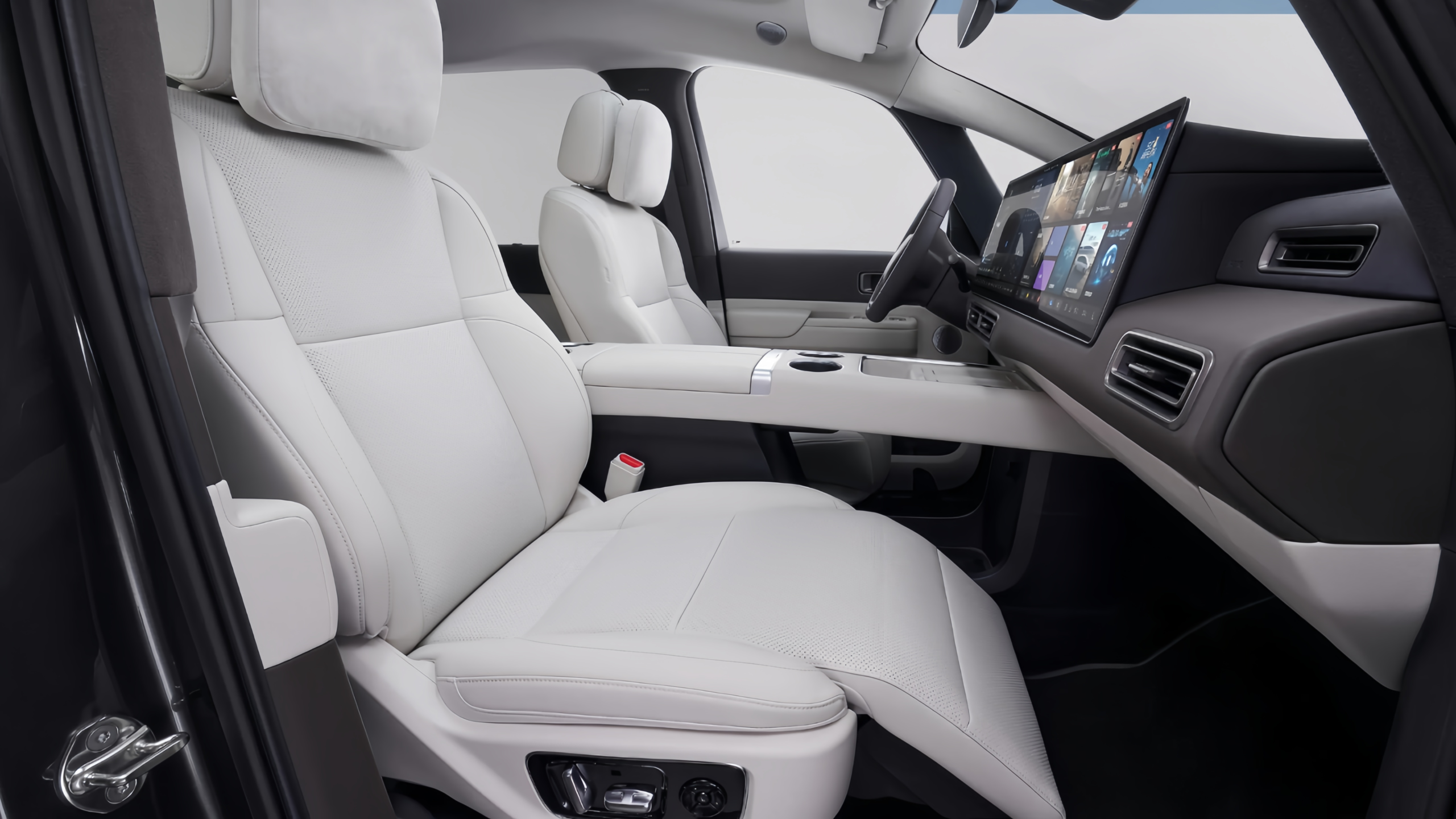 The front seats feature heated, ventilated seats and 16-point massage. In addition, the main driver has a magic carpet seat that automatically adjusts the cushion firmness and softness at the same time, depending on the length of the drive. The passenger side queen seat with leg rest has a power integrated leg rest angle of up to 65°. The second row seats have 16-point massage, 270° surround heating, seat ventilation, 70° recline and 78° adjustable legrest. As well as large size table board, independent 50W wireless fast charging panel for cell phone (total 4 50W wireless ventilated fast charging panels in the whole car)