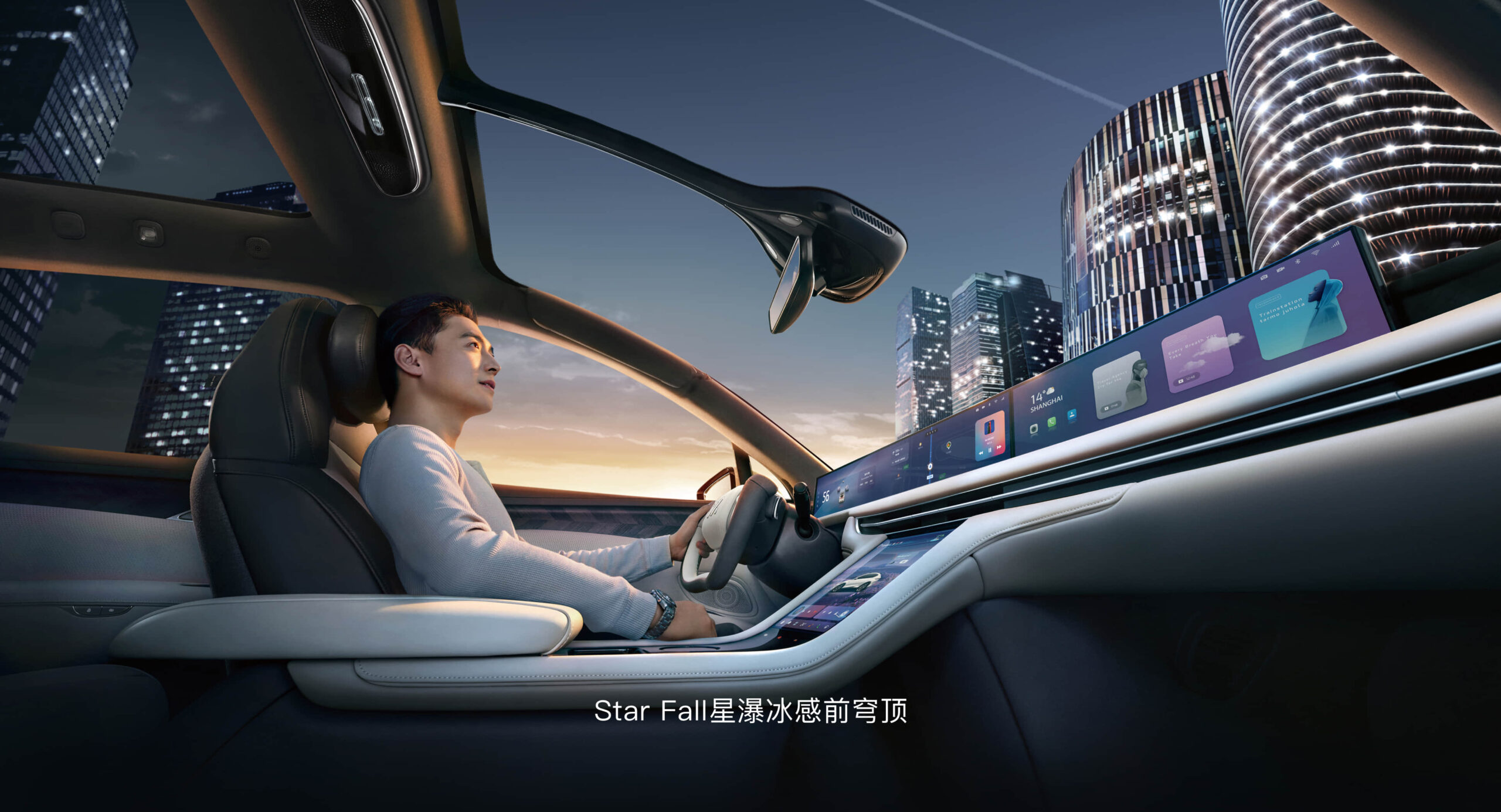 The interior of IM LS7 adopts a wrap-around yacht cabin design and uses a dual-patch color scheme for an overall great sense of quality. At the same time, the car is also equipped with a penetrating large multi-screen system, combined with the air-conditioning touch panel with display and dual-spoke multi-function steering wheel technology.