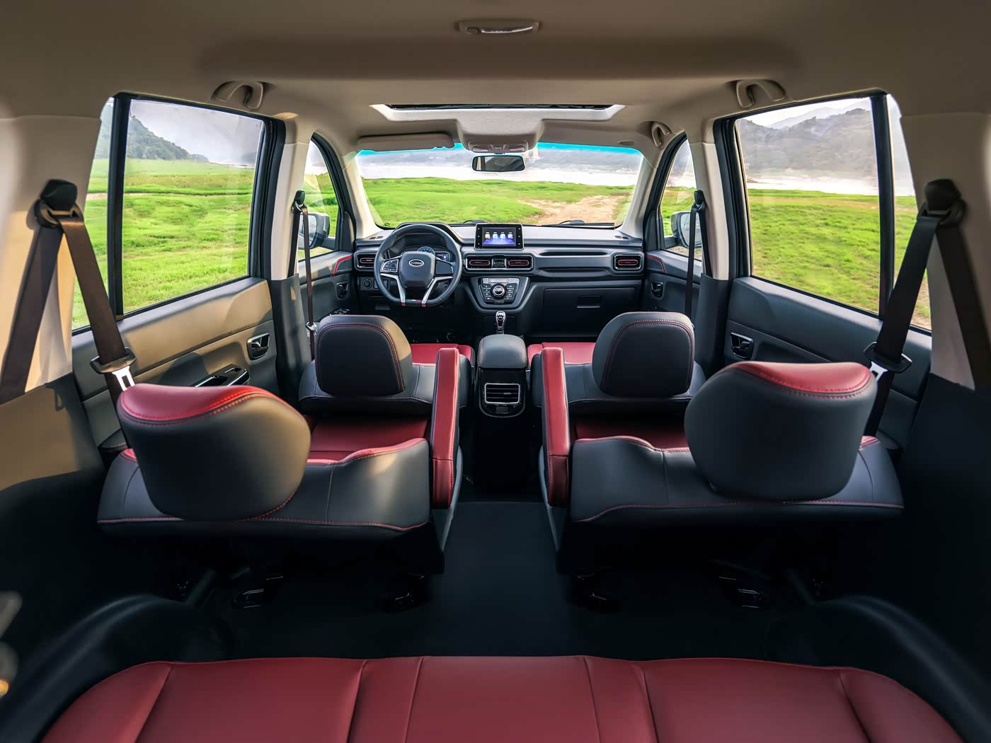 Inside, the focus is squarely on space and practicality. With a long wheelbase enabling a three-row, 2+3+2 seating configuration, it prioritizes passenger-carrying capacity above all. The cabin utilizes durable, easy-to-clean materials suited for active family life, and the straightforward layout of controls centers on ease of use. A 7-inch touchscreen serves as the hub for essential infotainment and the standard rear-view camera.