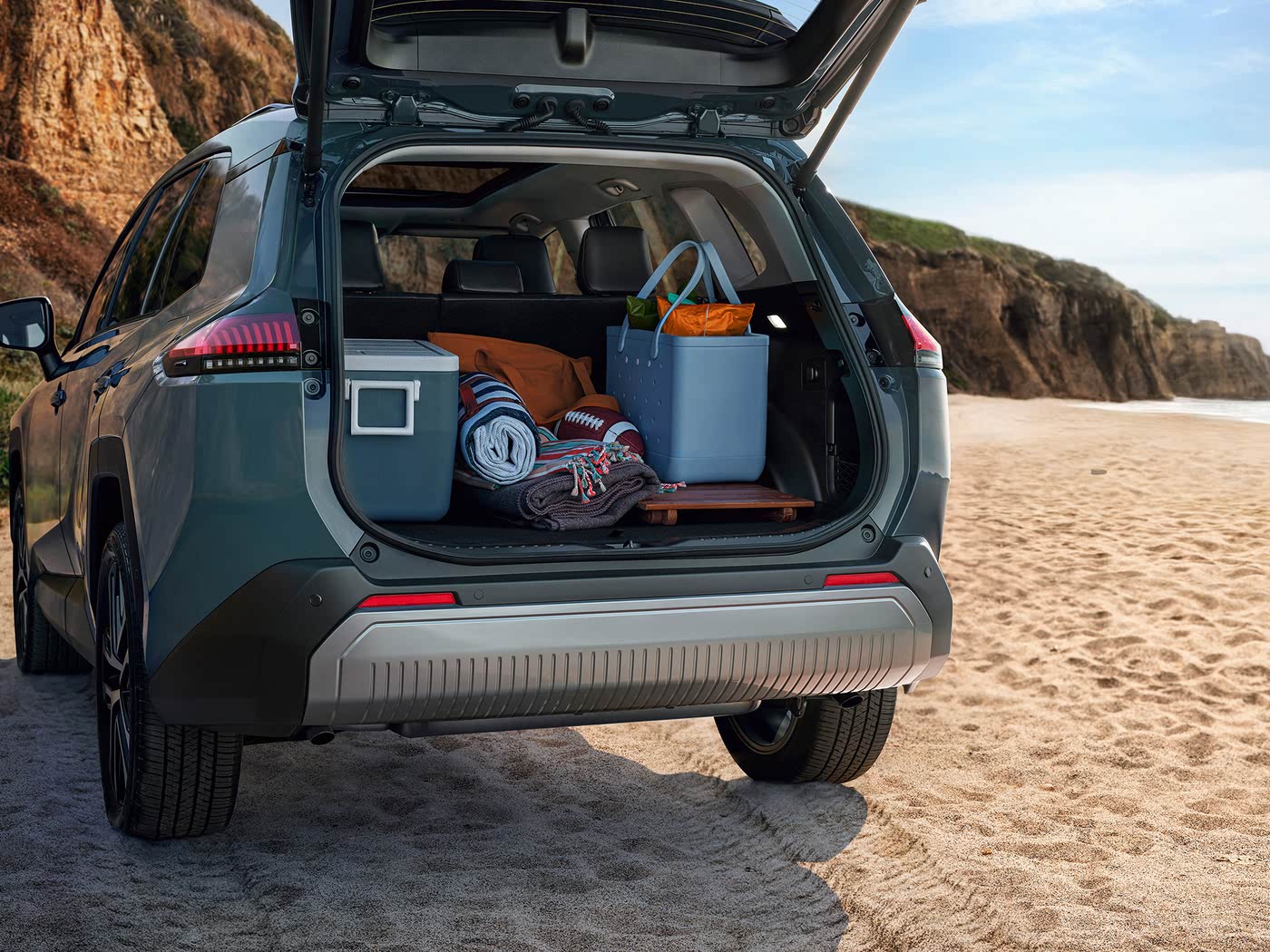 The 2026 RAV4 features a refreshed interpretation of Toyota’s rugged design language. It introduces sharper LED headlights with sequential signaling, a more pronounced grille texture, and sculpted body lines that enhance aerodynamic efficiency. New wheel designs and a choice of contemporary exterior colors emphasize its modern yet capable stance.